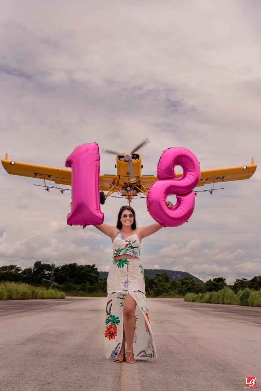 Esta é a Thais, ela completou 18 anos e para eternizar este momento, fizemos um ensaio fotográfico pela cidade e para finalizar com uma bela foto com seu pai fazendo um voo rasante.